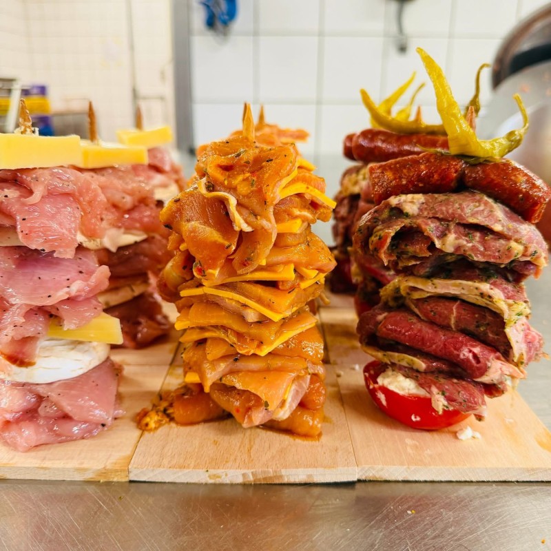 - La Mezze : tomate farcie à la fêta, fines tranches d'agneau marinées à l'ail